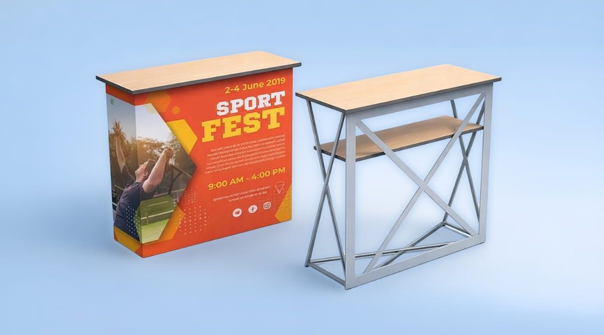I desk pubblicitari sono perfetti per eventi, fiere, manifestazioni e campagne promozionali. Personalizzandoli con il tuo logo e i colori aziendali, cattureranno l’attenzione dei visitatori, rendendo il tuo stand facilmente riconoscibile e memorabile.