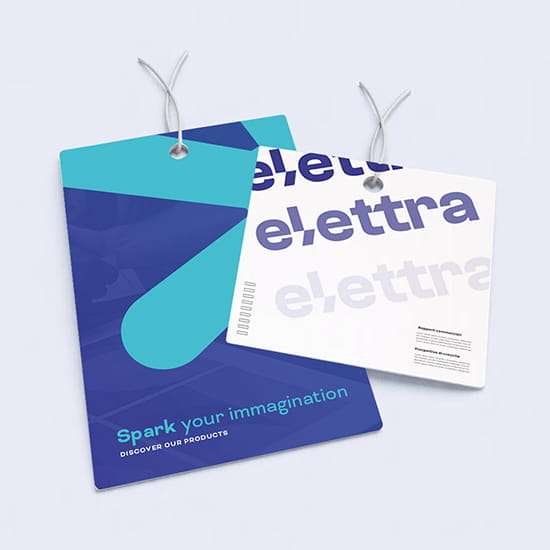 Elettra Officine Grafiche offre un servizio di stampa personalizzata cartellini abbigliamento. Puoi ordinare cartellini per negozi di moda, abbigliamento sportivo, accessori e molto altro.